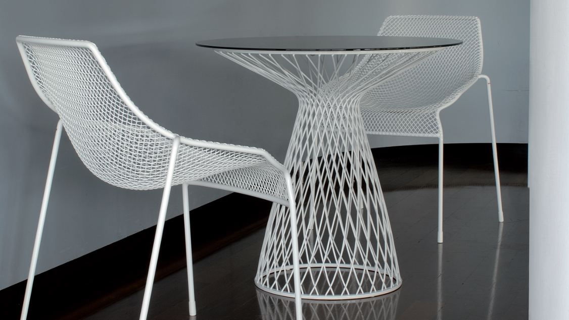 Graceful weave. Through a unique process of weaving and welding, metal mesh drapes like fabric in the EMU Heaven Series — creating seating with an ethereal lightness and a finely gauged softness.